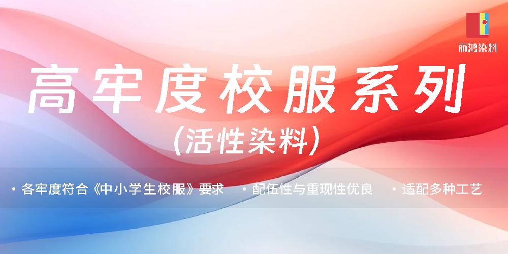產品介紹:高日曬淺、中、深活性染料,特深色FR系列活性染料,敏感色F型活性染料,校服系列染料,耐氯漂和耐水洗HW活性染料,中溫后絲光S型染料,棉/人棉混紡B型,耐鹽堿綠色組合,高洗水分散染料,液體分散染料、酸性染料三個系列(泳衣M型,內衣NHF,艷麗牢LY),陽離子染料,助劑。
